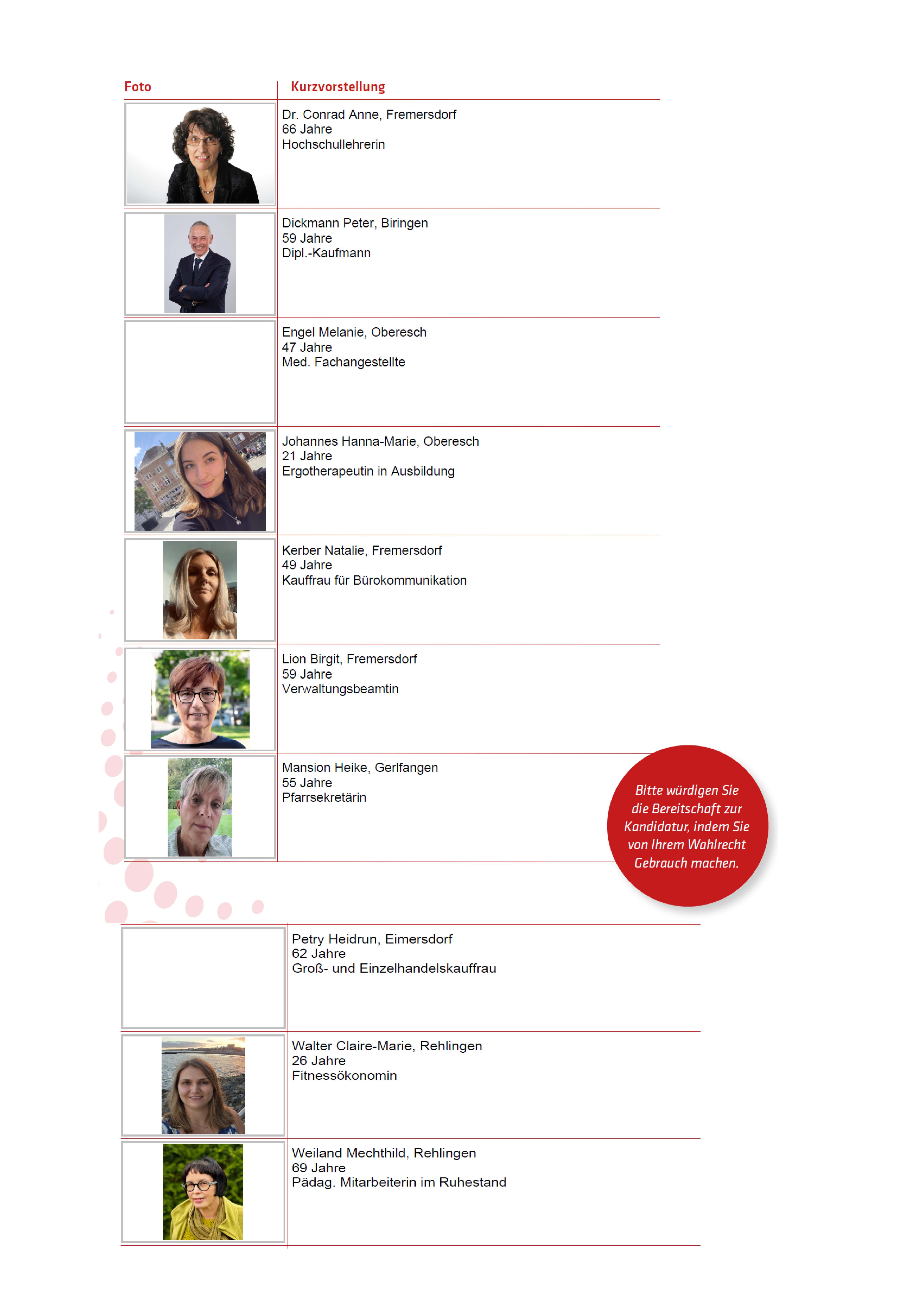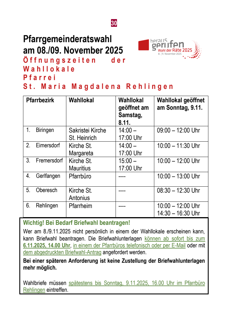 statt. In der Pfarrei St. Maria Magdalena ist die Wahlliste in sechs Pfarrbezirke
